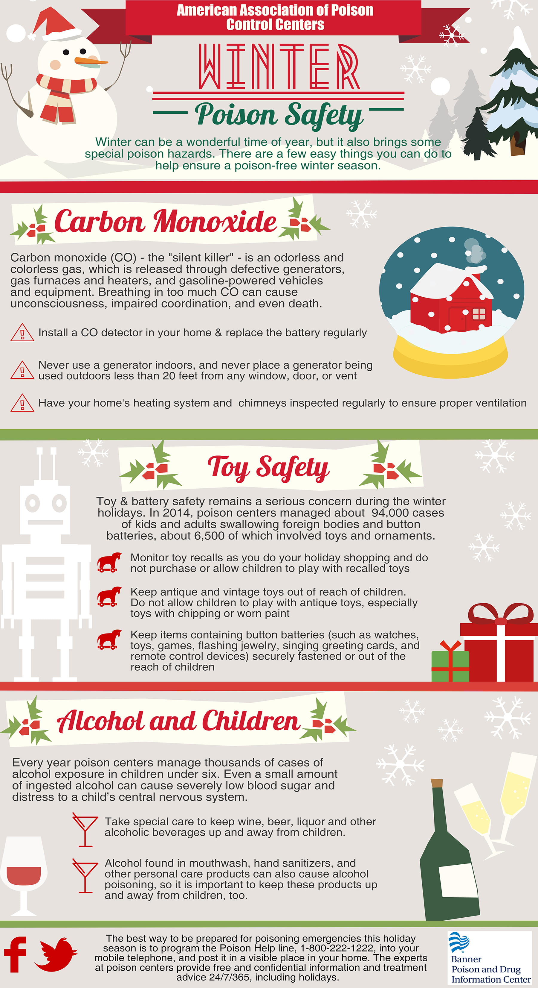 El invierno puede ser una época maravillosa del año, pero también trae algunos peligros especiales de envenenamiento. Esta infografía ofrece consejos que puede seguir, especialmente durante las vacaciones, cuando puede distraerse.